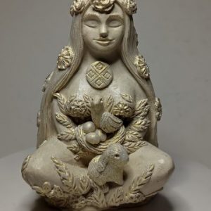 Статуэтка мать природа украшена листиками,на ногах сидит кролик,а в руках держит птичку . Связаться с автором фигурок, сувениров для приобретения…