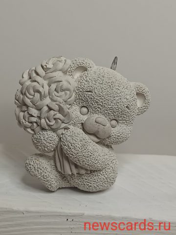 Мини фигурка мишка держит букет цветов,обняв его лапками,фигурка создана для раскраски детям и взрослым из скульптурного гипсоцемента 50г.
