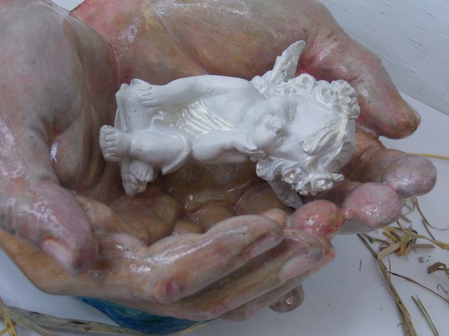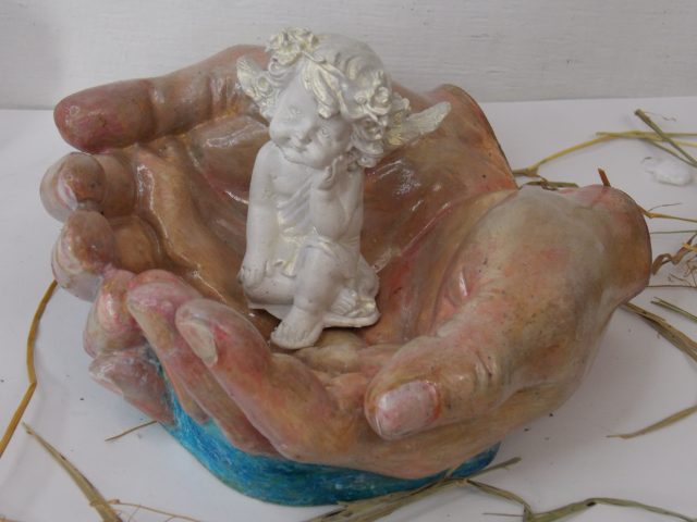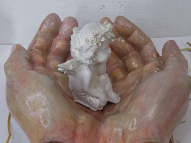 Каждая такая фигурка — плод многолетнего мастерства и бесконечной любви к деталям. Изготовлена вручную из скульптурного гипсоцемента Г-50 — материала, что по прочности и теплоте напоминает древнюю керамику, но легче и нежнее. Мастер начинает с лепки: комок гипса оживает под его пальцами, обретая контуры лица, изгиб крыла, мягкость складок одеяния. Затем — многоэтапная обработка: тщательная грунтовка, чтобы поверхность стала гладкой, как шёлк, и нанесение акрилового лака с перламутровой обработкой. Этот лак — магия света! Он переливается, словно жемчужины на крыльях бабочки, отражая блики свечи или утреннего солнца, и фигурка загорается внутренним сиянием. Никаких фабричных конвейеров, никаких одинаковых шаблонов: каждая ангелочка уникальна, как снежинка. Процесс занимает часы, а то и дни — от эскиза до финального дыхания лака, — чтобы она смотрелась не просто красиво, а божественно, трогая самую глубину души. Эстетически она безупречна: приятная на ощупь, тёплая, как прикосновение близкого человека, и такая изысканная, что хочется держать её в руках часами, забывая о времени.