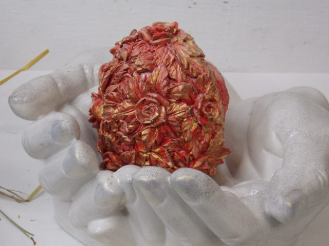 Первый этап — формовка: мастер вручную моделирует яйцо-основу, затем добавляет фигуры Девы и Младенца. Это требует терпения — каждая деталь, от складок одеяний Марии до крошечных пальчиков ребенка, вылепляется пальцами, чтобы передать тепло человеческого прикосновения. Затем идет грунтовка — специальный слой, который выравнивает поверхность, делая ее готовой к финальным штрихам. Без этого шага фигурка могла бы выглядеть грубой; с ним же она обретает гладкость, как кожа новорожденного.