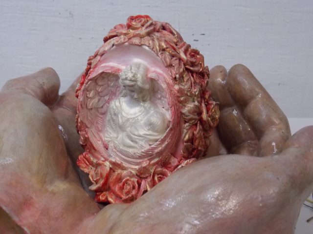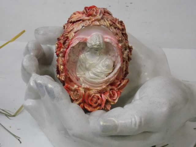 Далее — акриловый лак с перламутровой обработкой. Это не просто покрытие: это магия, которая добавляет глубину. Лак наносится в несколько слоев, каждый из которых полируется вручную, чтобы добиться эффекта, аналогичного керамике. Перламутр — это секрет: он создает иллюзию внутреннего свечения, как будто фигурка сама излучает свет. Розы окрашиваются отдельно, с использованием натуральных пигментов, чтобы цвета были насыщенными и стойкими. Весь процесс занимает дни, иногда недели, потому что каждая фигурка делается отдельно — нет двух одинаковых. Мастер не спешит: он вкладывает молитву в каждое движение, чтобы результат был не просто красивым, а божественным, способным коснуться сердца.