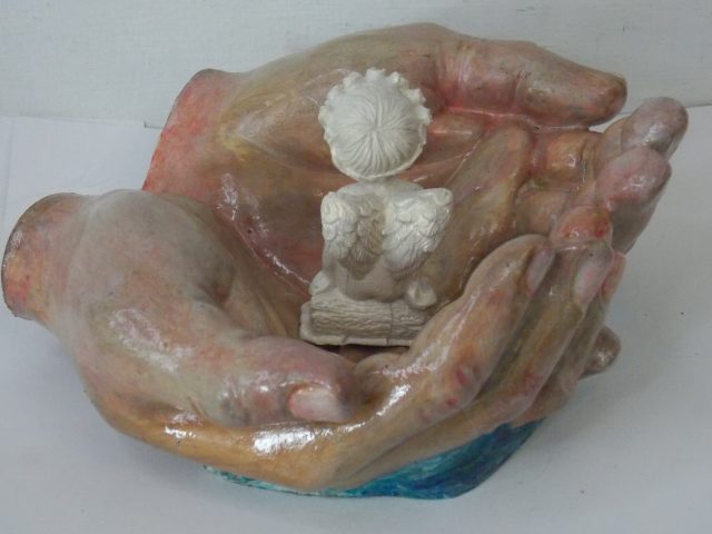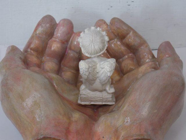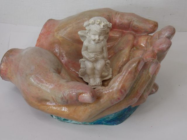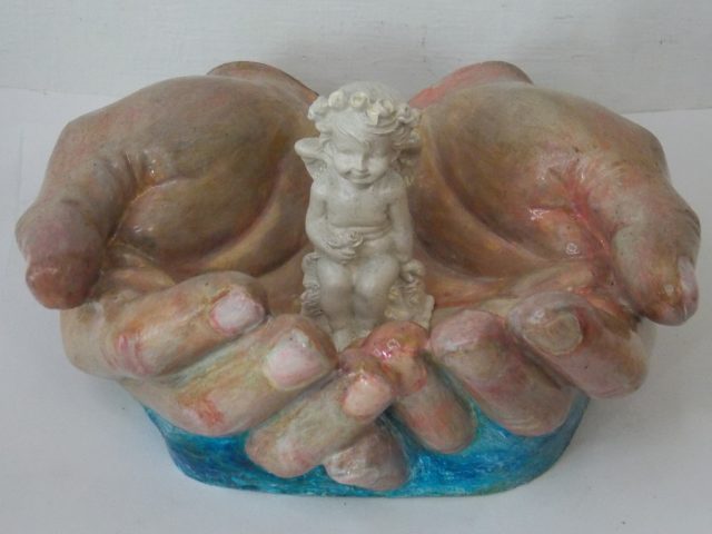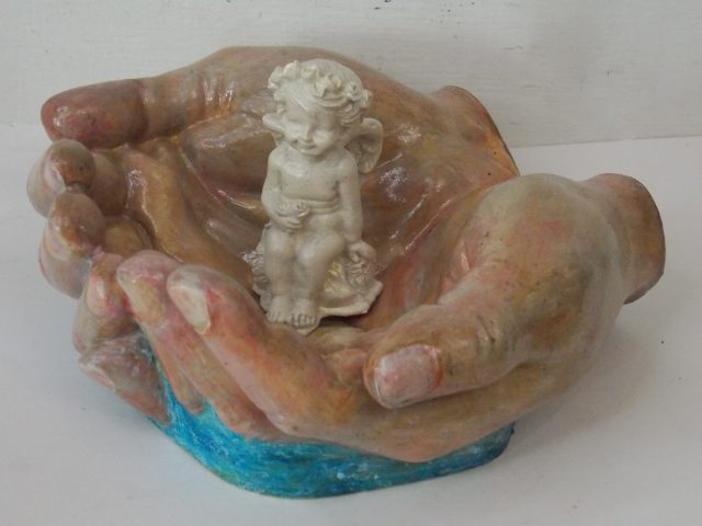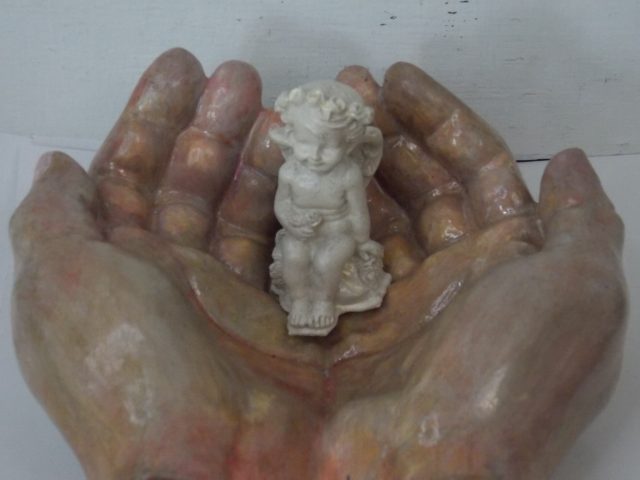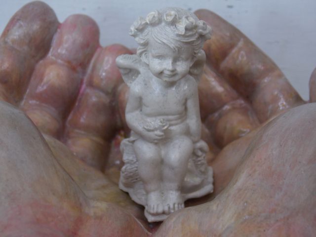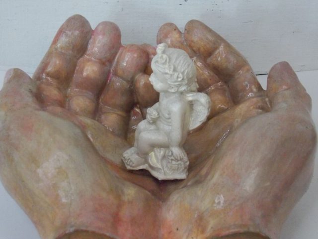 В Тюмени сувениры – Ангел с цветком на пеньке.