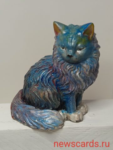Ручная роспись сибирской кошки,внизу на дне статуэтки в большинстве случаев стоит надпись Тюмень Пётр М