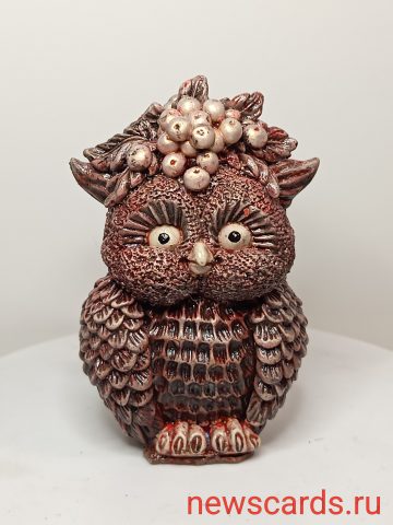Красивая фигурка совы с ягодами на голове ,смотрится очень красиво и может быть отличным подарком любому человеку.
